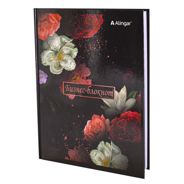 Бизнес-блокнот А4 80л. ALINGAR 'Цветы на черном', клетка, глянцевая ламинация, AL8820