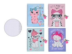 Блокнот 13х18 см КОТИКИ, 48 листов, с замочком, внутренний блок в клетку, M-9283