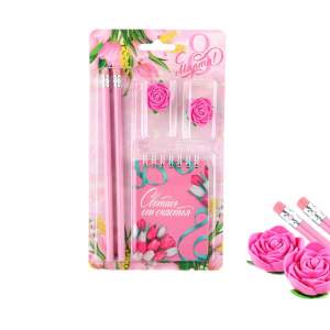 —Подарочный набор 'С 8 марта', карандаши (2 шт;уп), ластики (2 шт;уп), блокнот, 9891577