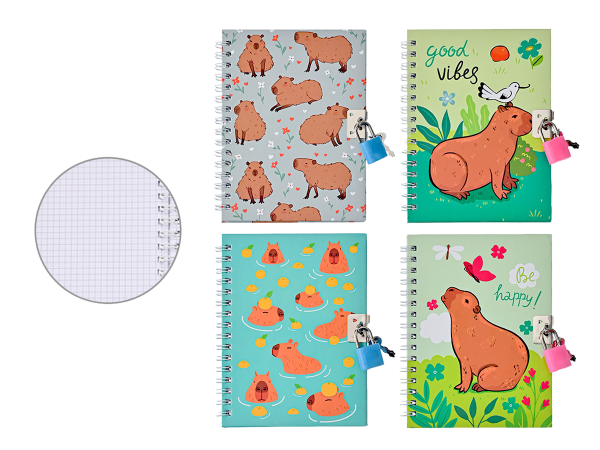 —Блокнот 11х15 см КАПИБАРА, 48 листов, с замочком, внутренний блок в клетку, M-3152