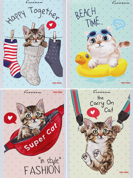 —БЛОКНОТ А6 24л. КОТИКИ ПОВСЮДУ, ассорти, на скрепке, цвет.мелов.обл, Б24-0516