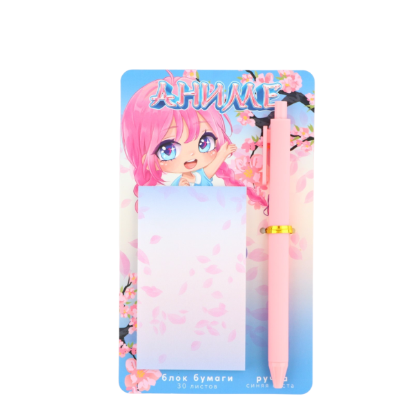 Набор ручка шариковая и блок отрывных листов, 'Аниме', 30 листов, 9877851