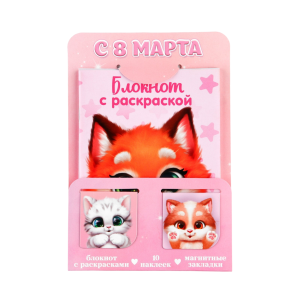 —Набор подарочный 'С 8 марта', блокнот А6, 32 листа, наклейки, магнитные закладки, 10000719