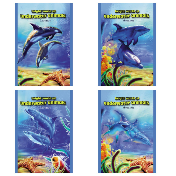 —Блокнот на скрепке А6 , 'Яркий подводный мир', Б24-4390