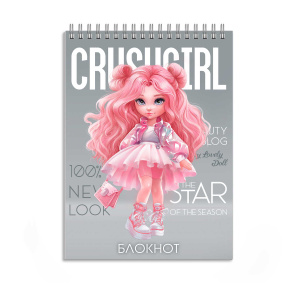 Блокнот, А6, КРАСОТКА 96 л, вн.блок - клетка, сплошной УФ-лак, гребень, 70141