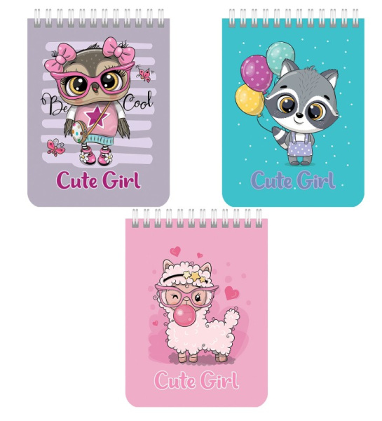 —Блокнот 'Cute Girl', А6, 40 листов, на гребне, клетка, 114395