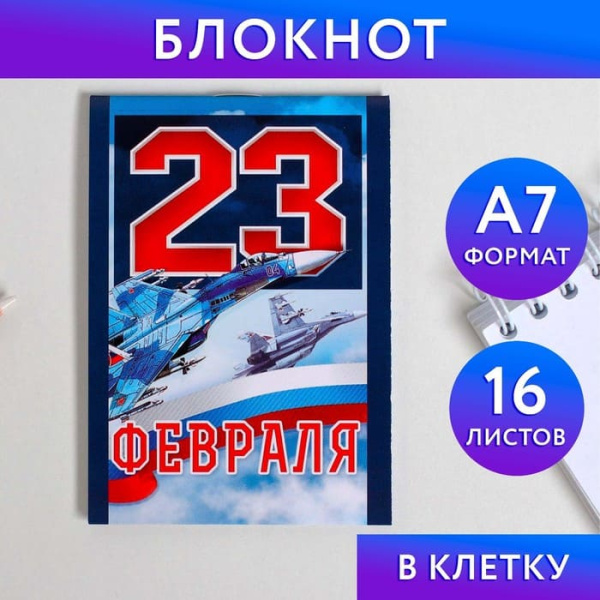 —Блокнот 23 ФЕВРАЛЯ клет. (16 л.) арт. 2742842