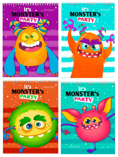 TМ'Profit'Блокнот А7 40л. на гребне МОНСТРИКИ (Б40-6048) обл.-мел.картон,бл-офс,в клетку