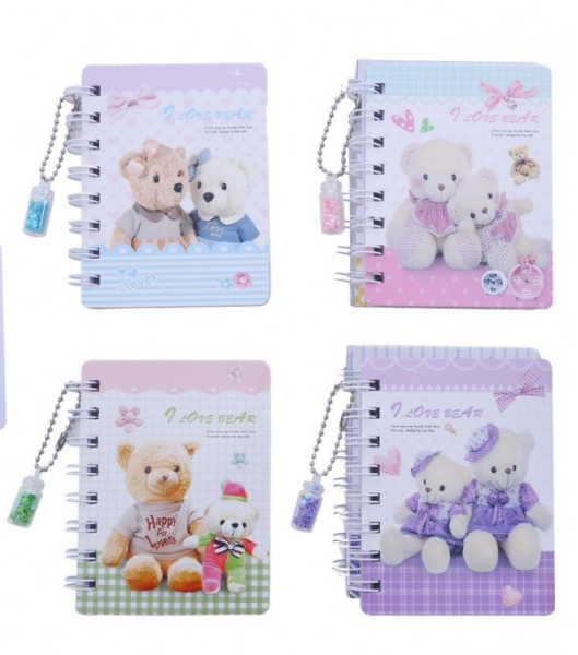 Блокнот на евроспирали с подвеской MAZARI МИШКИ, 11,5х8,5 см, 60 листов, в асс, М-9169;9168