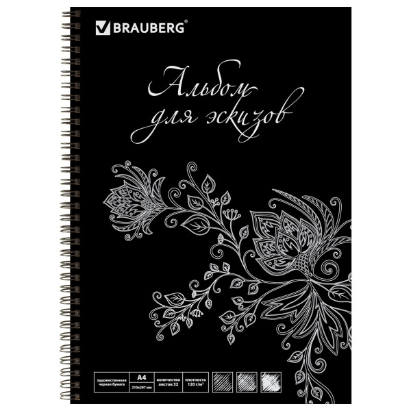 —Альбом-скетчбук А4 32 л Brauberg Узор чёрная бумага 210х297 мм 128951