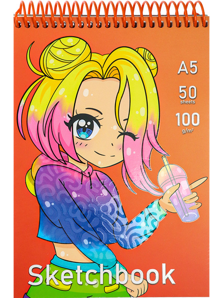 Скетчбук ,'Девочка и стакан', А5 , 50 листов , на спирале, С50-4215