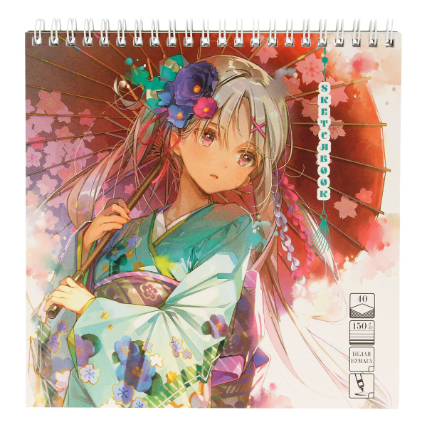 Скетчбук 40 листов "Девушка с зонтиком", 190х190 мм, 40-5251