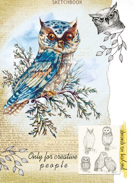 —Скетчбук А5 64 л Prof-Press Сова на ветке 64-3901