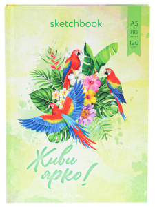 —Скетчбук ,'Попугай в цветах', А5 , 80 листов, С80-3839