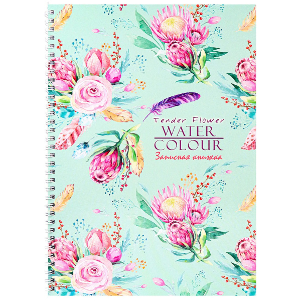 Записная книжка , "Цветочный узор", А4 , 100 листов , на гребне, К100-5940