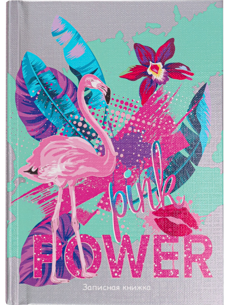 —Записная книжка 'Розовый фламинго и листья', А6 , 64 листа, К64-5975
