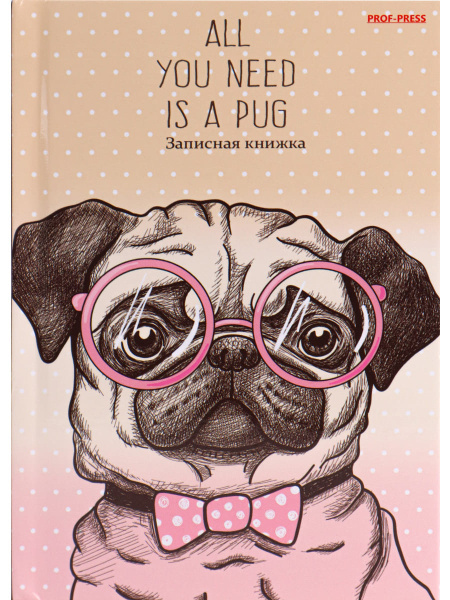 Записная книжка 'Мопсик в очках', А6 , 64 листа, 64-6838