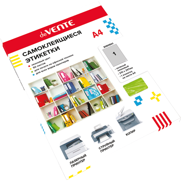 Этикетки самоклеящиеся 'deVENTE', Neon , А4 , зеленые , 210х297мм , 50л, 2060501