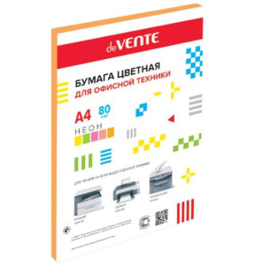 —Бумага цветная для офисной техники 'deVENTE', А4 , 20 листов, неон 75 г;м2, оранжевый цвет, 2072223