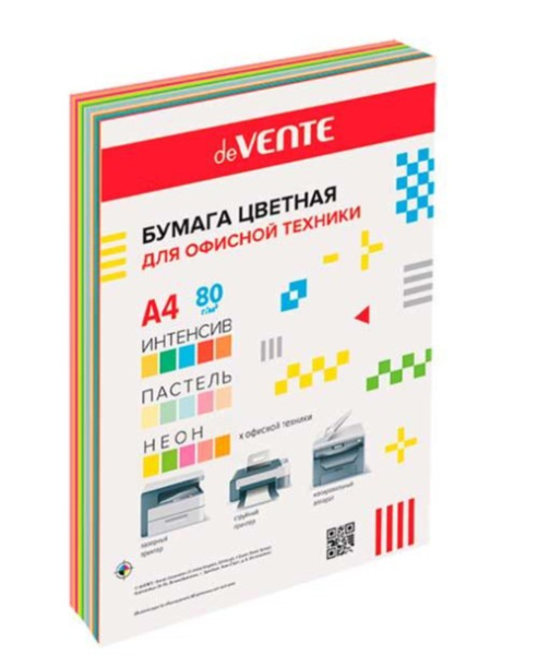 —Бумага цветная для офисной техники 'deVENTE. MIX' A4 60 л, 75 г;м² и 80 г;м², 15 цветов 2072424