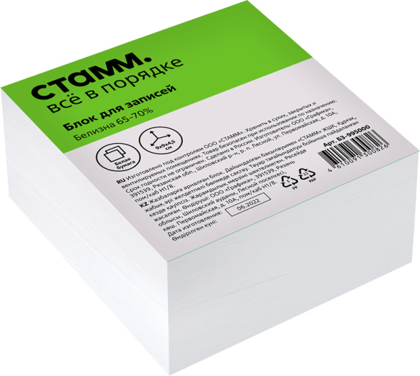 —Блок для записей СТАММ , 9х9х4,5 см , белый, Б3-995000