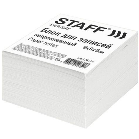 —Блок для записей «STAFF», непроклеенный (9х9х5 см.) белизна 70-80% арт. 126574
