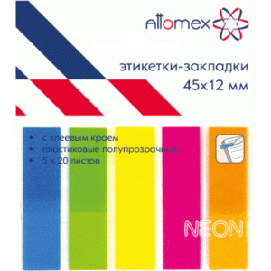 —Набор самоклеящихся этикеток-закладок 'Attomex' пластик , полупрозрачные 45x12 мм , 5x20 л, 2011703