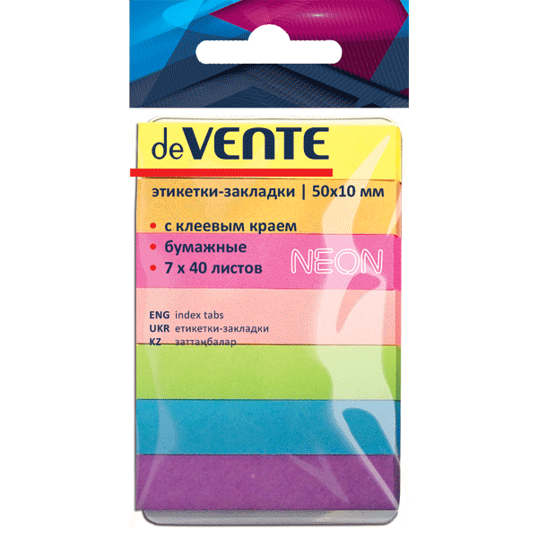 —Набор самоклеящихся этикеток-закладок 'deVENTE' бумажные 50x10 мм, 7x40 листов, 75 г;м², 2011304