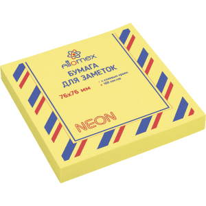 Клейкая бумага для заметок Attomex 76 х 76 мм, 100 листов , неон , жел, 2010913