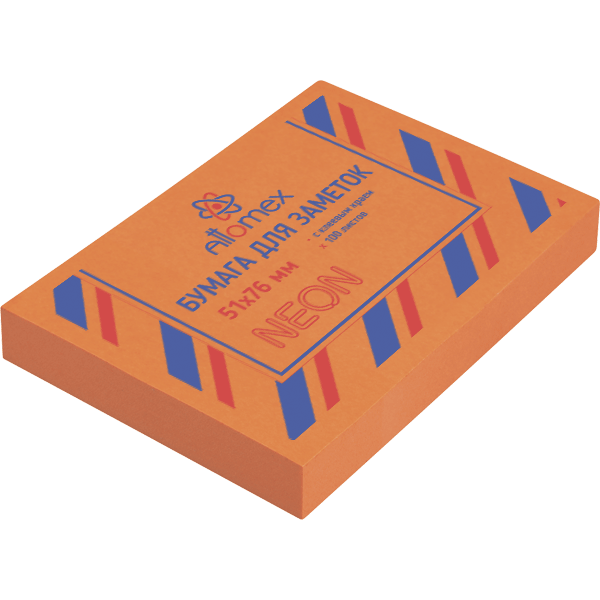 —Клейкая бумага для заметок Attomex 51х76 мм., 100 листов, офсет, 75 г;м2, оранжевая, неон, 2010906