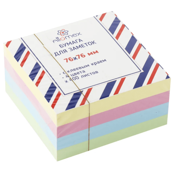 Клейкая бумага для заметок "Attomex" 76x76 мм, 400 листов, офсет 75 г/м². 2010204