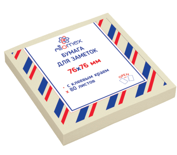 —Клейкая бумага для заметок 'Attomex' 76x76 мм, 80 листов, с клеевым краем, 2010701