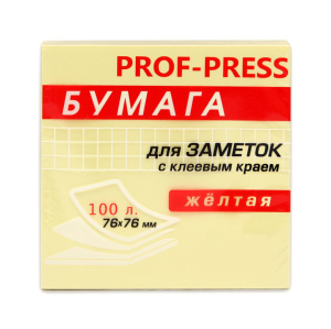 —Бумага для заметок с клеевым краем Prof-Press, 76 х 76 мм., жёлтая, 100 л., 3Б-1552