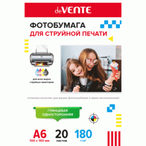 Фотобумага для струйной печати 'deVENTE' A6, 20 л, 180 г;м², глянцевая односторонняя, 2042902
