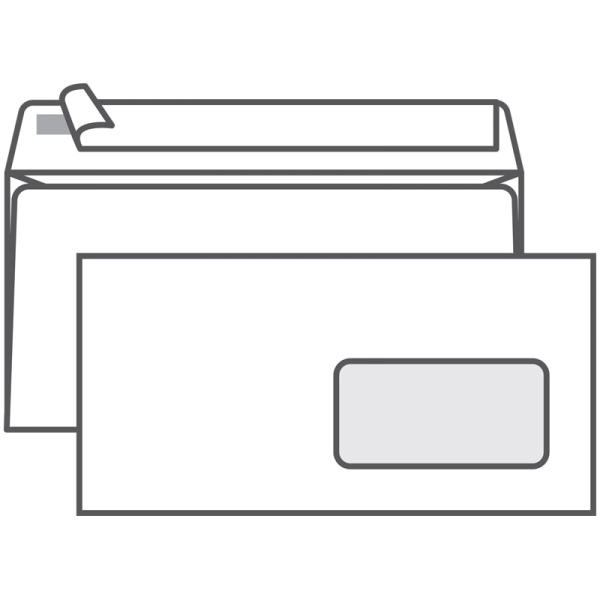Конверт E65, Ряжская печатная фабрика 110~220 мм, б;подсказа, с прав. окном, отр. лента