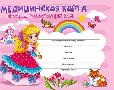 Медицинская карта ребёнка А5 Prof-Press 'Девочка', 96 л., 7БЦ, мелов. обл., блок офсет, КМ-6123