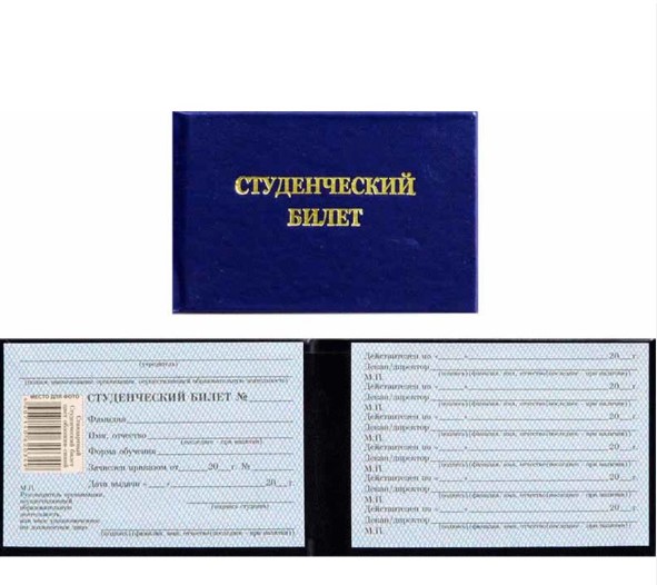 —Студенческий билет ВУЗ (жесткий), бумвинил синий, 95х65 мм, СБВ-203