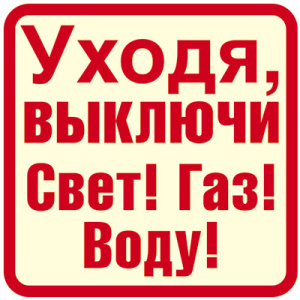 —Наклейка "Уходя, выключи Свет! Газ! Воду!", ШН-12028 9,5 х9,5