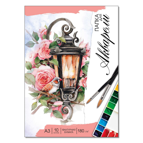 —Папка для акварели, формат А3, 10 листов, папка с клапанами, 62820