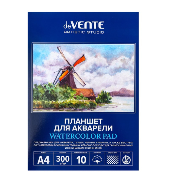 —Планшет для акварели A4 10 листов 'deVENTE. ARTISTIC STUDIO' акварельная бумага 300 г;м² , 2131317