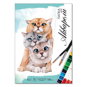 —Папка для акварели, формат А3, 10 листов, папка с клапанами, 62819