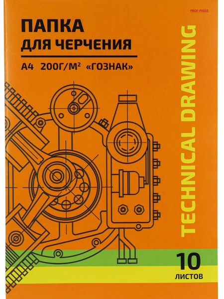 Папка для черчения А4, 'Чертеж механизма-7', 10 листов, цв, обложка, ГОЗНАК, 10-5817