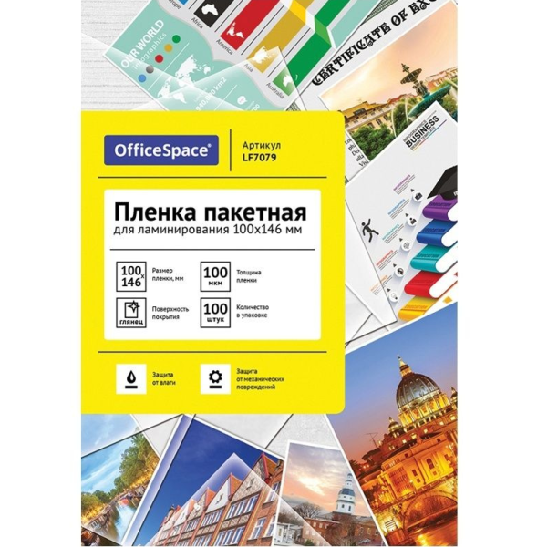 Плёнка для ламинирования А6 ,OfficeSpace ,100х146 мм , 100 мкм , глянец 100 листов, LF7079