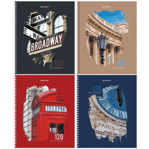 Тетрадь А5, 120л. 'BRAUBERG.Города', клетка , твердая обложка , на гребне, 404449