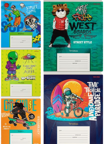 Тетради А5 12л., ЧАСТАЯ КОСАЯ ЛИНИЯ цветная обложка, ассорти