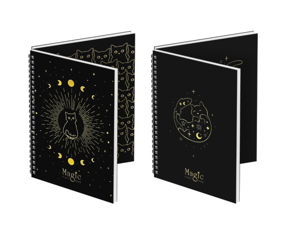 Тетрадь 80л., А5, клетка на гребне Meshu 'Black Cat', матовая ламинация, MS_53951