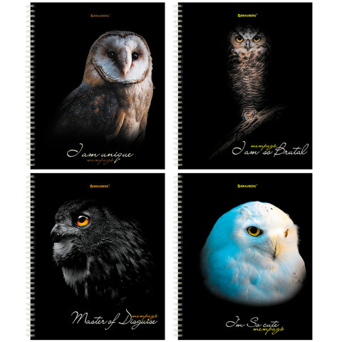 Тетрадь А5, 96л. 'BRAUBERG.Cовы', клетка , твердая обложка , на гребне, 404443