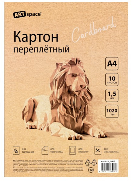 —Картон переплетный А4, ArtSpace, 10 л, толщина 1,5 мм, в пакете, Пк10_50413