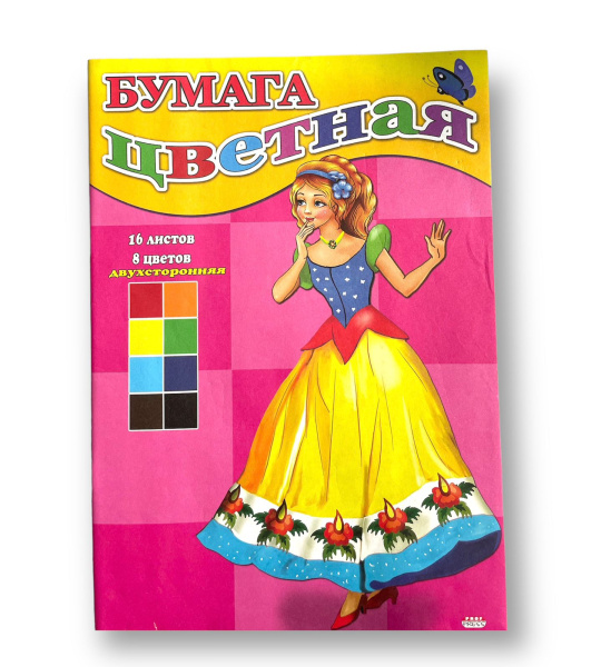 Цветная бумага,193х280 мм,"Золушка",16 листов,8 цветов. 16-7432