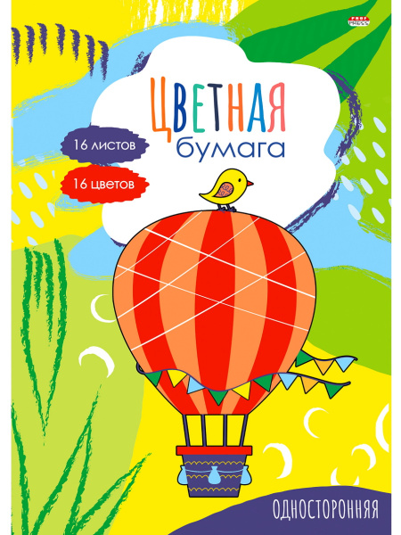 —Цветная бумага, А4, 'Воздушный Шарик', 16 листов, 16 цветов, односторонняя, 16-4446